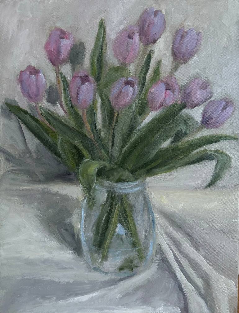 oil painting on canvas, I bought a bouquet of tulips and painted them