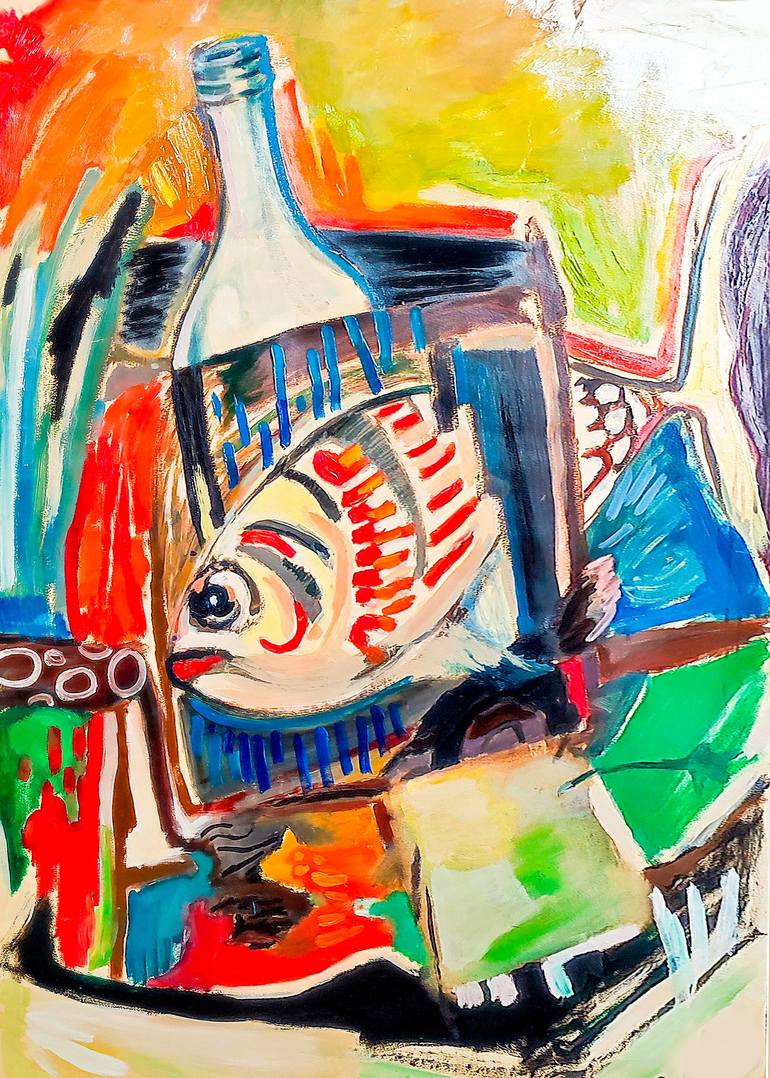 “Turkish Raki And Fish” is a nostalgic tribute to Istanbul’s Bosphorus culture, evoking memories of grilled fish, raki glasses, and heartfelt conversations under the Marmara sky. Inspired by Orhan Veli’s iconic line “Bir de rakı şişesinde balık olsam,” the painting blends joy, poetry, and gentle mel...
