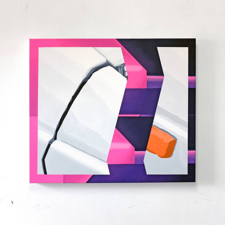 This painting is based on a digital sketch that plays with light and shadow and makes representational elements abstract and abstract elements seem real. The direct inspiration is a James Turrell light sculpture and the details of a white car.