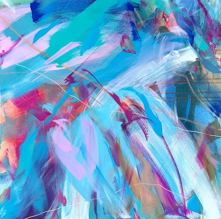This painting is inspired by the turquiose-blue sea, white sand, purple skies and overall tropical & exotic scents of this planet. This painting is mixed media /acrylic and chalk on stretched canvas), ready to hang.