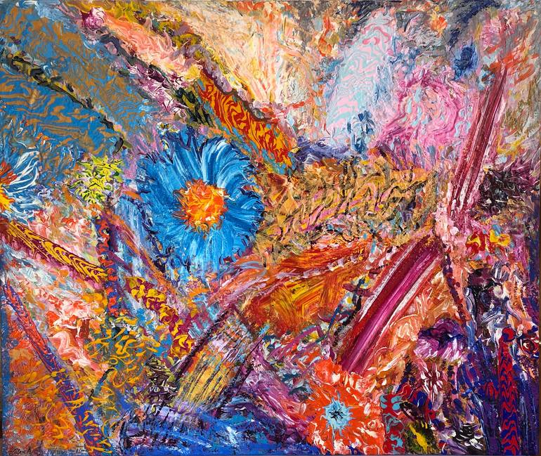 This oil painting took several years to complete; the result is a highly textured surface (see detailed photos). Inspiration comes as it often does from visits to garden centers, especially those that stock the more exotic plants with their complicated forms and ravishing colors. This painting also ...