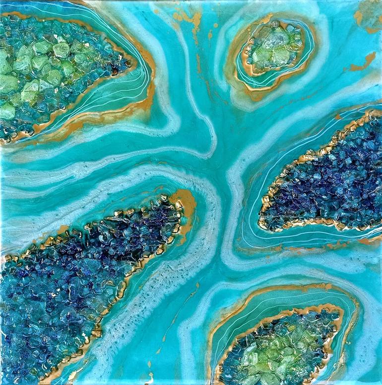 Epoxy resin on canvas Glass crystals, glitter Ready to hang up immediately.