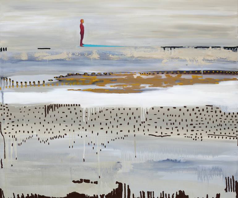 I love to place the human figure in vast, colorful semi-abstract landscapes. In some works my figures are depicted as an outline which has been filled in with various colors and shapes - as if the human form is a 'container' - of emotions, thoughts, memories. In other works, there is a more realisti...