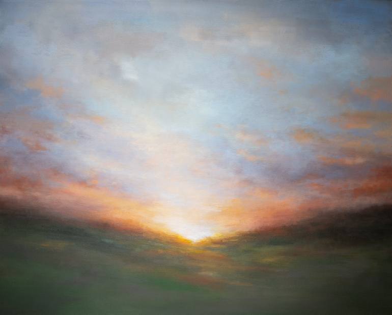 An impressionistic sunset landscape painting inspired by some seasonal stunning skies capturing the light and colours just as the sun sets over the horizon at dusk. Painted in my impressionist style with large brushes, texture, a lot of blending and layers to capture the atmosphere of that one momen...