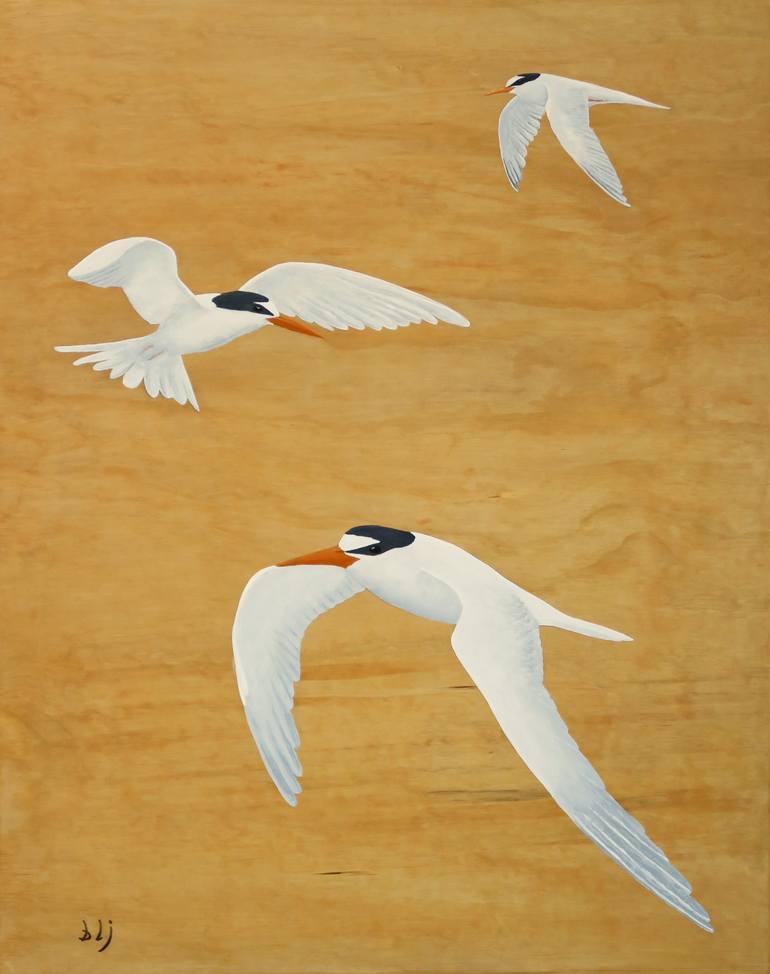 Twists And Terns is a large painting of playful Tern sea birds in flight; on a plywood panel which is backed with a timber support frame made with professional quality joinery. Please note that this painting is framed as shown in the photos. Only the best artist acrylic paints are used. The board is...