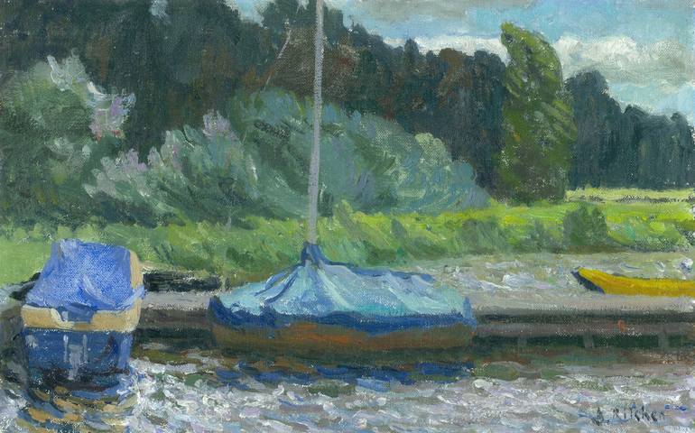 Ben Rikken (1951) "The motto of my work is: See, then it only exists. The reason for a painting can be a strip of light on the sea, a momentary ripple on the water, the silence after a rain shower. In all its manifestations, water is a connection between sky and land. I feel at home on the waterfront, because there light and color come together in optima forma, there I see the light "silent" with a passing storm, colors light up in the summer afternoon or glow in the I strive to translate those characteristic moods that I experience in the landscape into a palette that is challenging to me. " Ben Rikken prefers to work on site, strengthened in his view that "if you want to paint a landscape, you have to BE there too". He captures his fascination for the changing appearances of the landscape in series of oil studies with varying color schemes with the brushwork that is characteristic of his own handwriting. Sometimes he elaborates these studies in the studio in a larger format, some of which can be seen in this exhibition. He regularly makes trips abroad, especially southwards, to the coast of Normandy, Brittany, the French south coast, to the Italian west coast, but now mainly to the Spanish east coast. There he managed to conquer a more colorful palette due to the constant, warm afternoon light. While at the seaside we mainly look at the light, there you have the light in the back, which offers a much richer and warmer palette. He has also applied the same palette to subjects closer to home, the boathouses, boats and reflections of objects in the water at the Zuidlaardermeer, Matsloot, and the Reitdiep. In the work made on the Wad near Paessens - Moddergat he explored the border area between land and sea, the relationship between the colors of land, water and sky. This series of paintings concludes another phase in the search for the ultimate light in my work. An exhibition by an avid observer, with a flawless sense of mood, light and color captured in idiosyncratic and striking compositions.