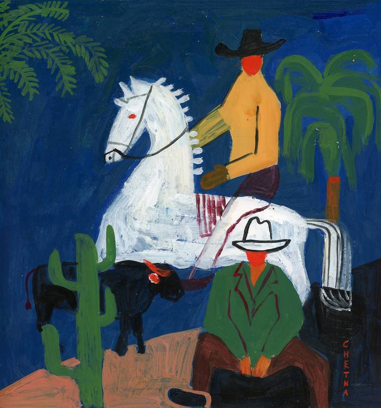 I'm drawn to the space between abstract and representational art. I love using bold colors and thick impasto to build up texture and depth. My brushstrokes are often gestural and expressive, adding a sense of movement and energy to the canvas. I aim to create a dynamic interplay between form and expression, where the elements on the canvas harmonize to create a unified whole. Whether I'm painting figures, objects, or landscapes, I seek to capture a sense of quietude and introspection. Cowboys, horses, and human figures are recurring subjects in my work. I'm fascinated by their energy and stillness, and I enjoy reimagining them through my artistic lens. My creative process is fueled by an exploration of color, texture, and form. I find inspiration in both the natural world and the human experience, and I strive to translate those observations into compelling visual narratives.
