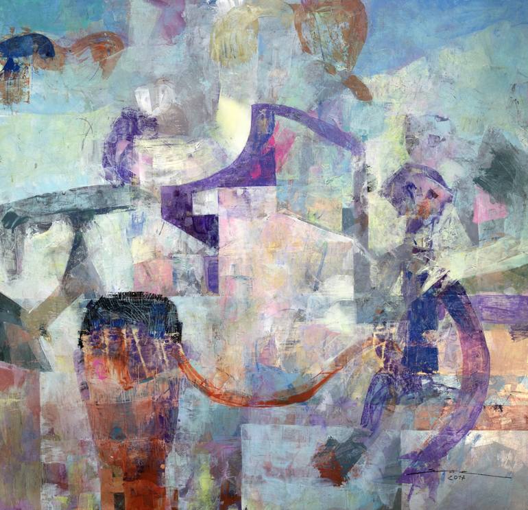 This work belongs to my painting series called "Abstract Figurative". It is a mixed media using acrylic, oil, ink and latex on wooden dm. My way of painting here is to first prepare the background by working the texture and color. I am smearing the surface and the same painting is suggesting to me ...