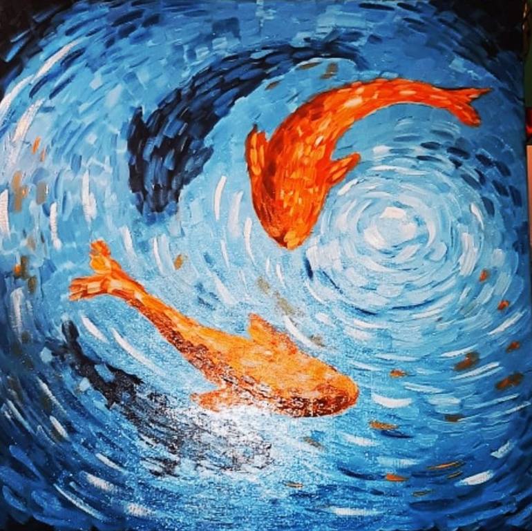 Two fishes 50x50 centimeters 2020 written with oil and color