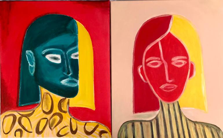 Portraits of two women, the paintings are painted on canvas with high quality acrylic paints and varnished modern wall art, This modern abstract art looks beautiful on the wall, the picture is a good gift for friends and loved ones , light paintings size 50 by 40, will decorate your home. The pict...
