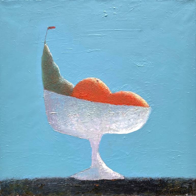 “ Two oranges and a pear ” Sergey Loutchichine 2017 Odessa 60×60 cm. (23 × 23 inch) Painting Oil on canvas