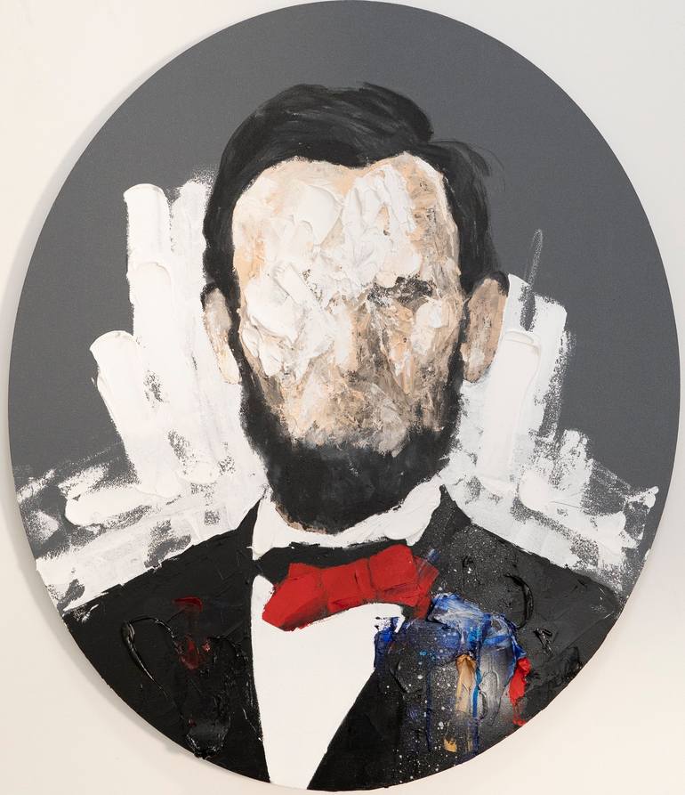 UNTITLED Portrait work (Abraham Lincoln) Mixed media with spray paint Painted on oblong canvas size 700mm × 600mm unique original Ready to hang