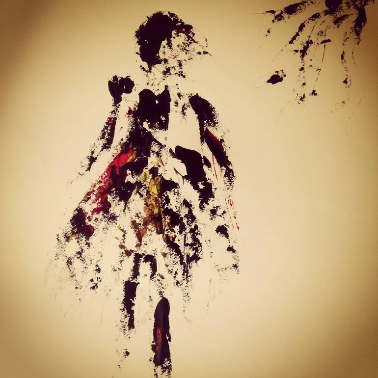 A LADY WALKING ABSTRACTLY, LEAVING ALL HEARTACHE BEHIND! ABSTRACT ARTWORK, ACRYLIC ON COTTON PAPER, PAINTED WITH A PALETTE KNIFE