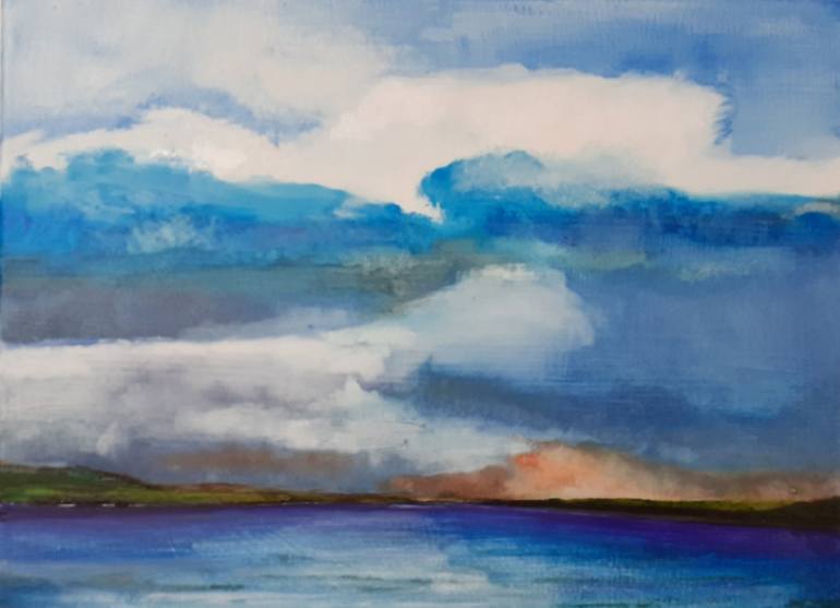 This was inspired by a photograph I took from outside the studio one very dramatic day. The weather was turning and shifting quickly. I wanted to concentrate on the sky and cloud formation which was quite complex. Painted on a well dried oil primer. I hope you like it.
