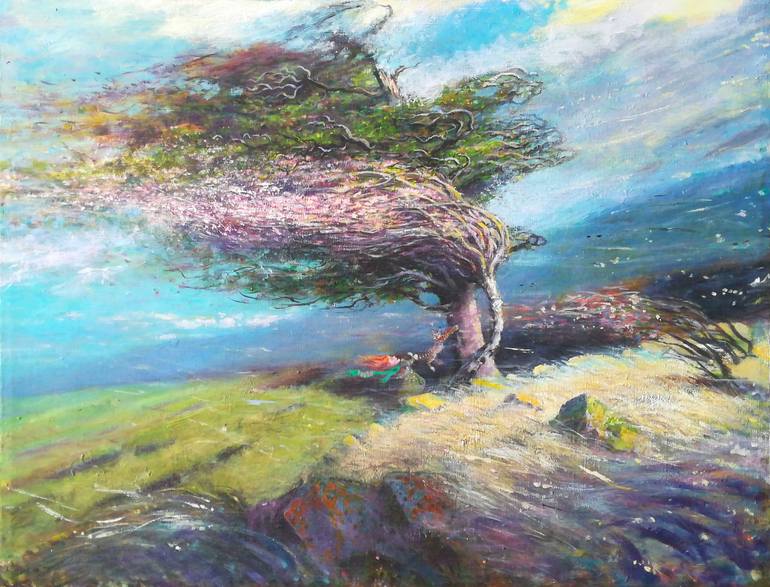 Girl Catches Cat Escaping from Tree Against Stormy Landscape “This landscape painting, perfect for hanging in a child’s room, is not only beautiful, but is intended to inspire a love of art in young people. I believe that the images we are surrounded by in childhood remain in our hearts forever, sha...
