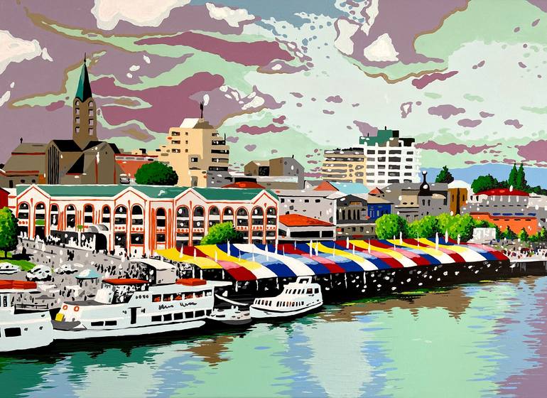 Different sceneries and elements inspire my creations. I tend to "collect" different objects, places and moments, by the action of painting them, and this way I can capture them in a unique way. This painting is inspired by Valdivia, my hometown, and the view that the city offers from the river to t...