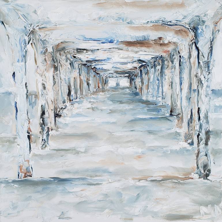 The inspiration of this painting came from my early morning run along the strand. I want the viewer to see the early morning glass of a calm ocean on a foggy day. I chose this subject because the water and the pier allows me to create texture which I feel brings the viewer a tactile experience.