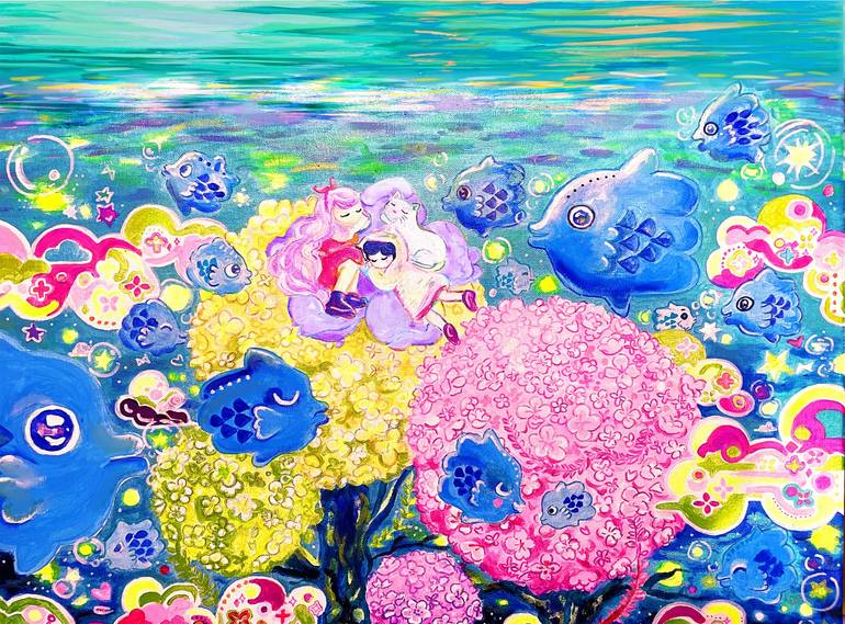 The underwater world, with its colors adapting to the changing light on the water's surface, is filled with unknown giant creatures and holds many magical secrets. In this painting, magical flowers that should have grown on land are also found underwater, resembling colorful castles that bring a my...