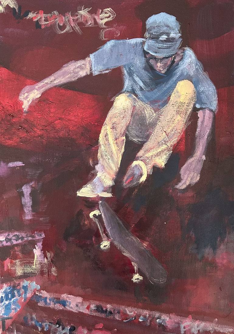 This piece was inspired by skateboarders at South Bank London The undercroft of the Southbank Centre has been the beating heart of London skateboarding for around 40+ years now. It's an integral for of Southbank with it's gritty noise and graffity on walls. This piece reflects the darkness of the un...