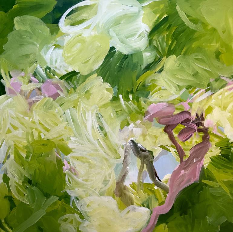 Abstract work inspired by nature, its generous trees, its shades of green colors. The artist gives us her sensitive and informal vision of her feelings.