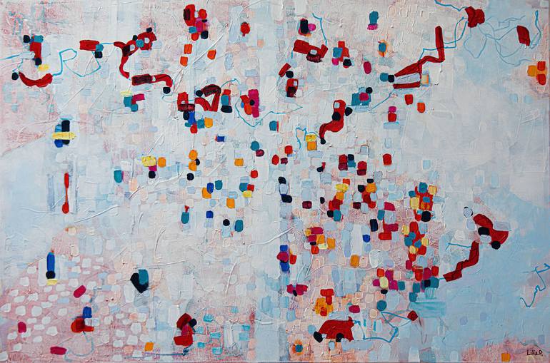 A colored world is hidden under a white veil.Inspired by nature and this painting i tried to balance the colors with its loose lines. I like abstract art because it gives me the freedom to create what i feel . Ready to hang.Signed and dated on the back.Certificate of Authenticity.