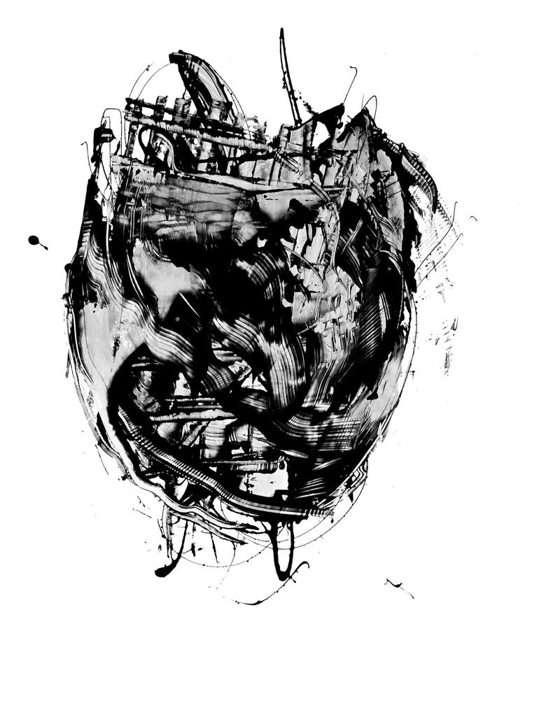 "Underworld" is painted with acrylic on a 20 x 26 x .1 inch sheet of synthetic paper (Yupo), ready to frame. This painting is a perfect example of Hunter's highly fluid, expressionistic style -- which so often results in arresting images with a sense of depth and sculptural form. Black and white. El...