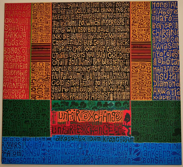I am interested in the relationship between text and image as elements in art making. I seek to combine the two in addressing issues of prime concerns to me. Spoken words inscribed as written words could end up in a colourfield all livened up again like muted visual poetry...sometimes subdued, sometimes overpowering holding their own meanings.