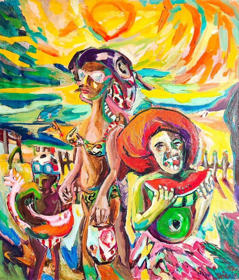 "Unfortunately No Watermelon Left To You!" by Göknil Gümüş Sungurtekin, is an oil on canvas painting that captures the playful irony of daily life, blending childhood memories with the unexpected turns of adulthood. The artist's expressive brushstrokes and vibrant colors create a cheerful yet reflec...