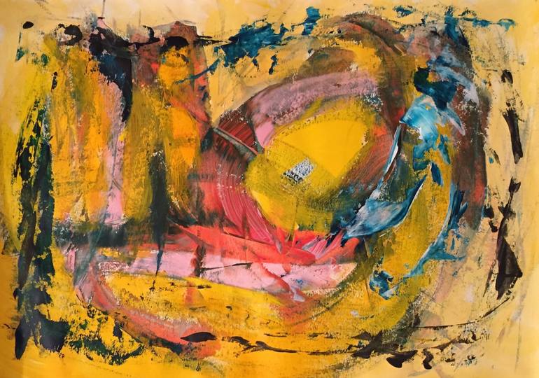 "Unknown Land" is a vibrant artwork on paper inspired by nature, as many of my artworks. It is a modern, abstract painting with a strong, dynamic expression - a statement piece for every room. The main color is a warm yellow. The painting needs to be framed. Signed on the front, title and date writ...
