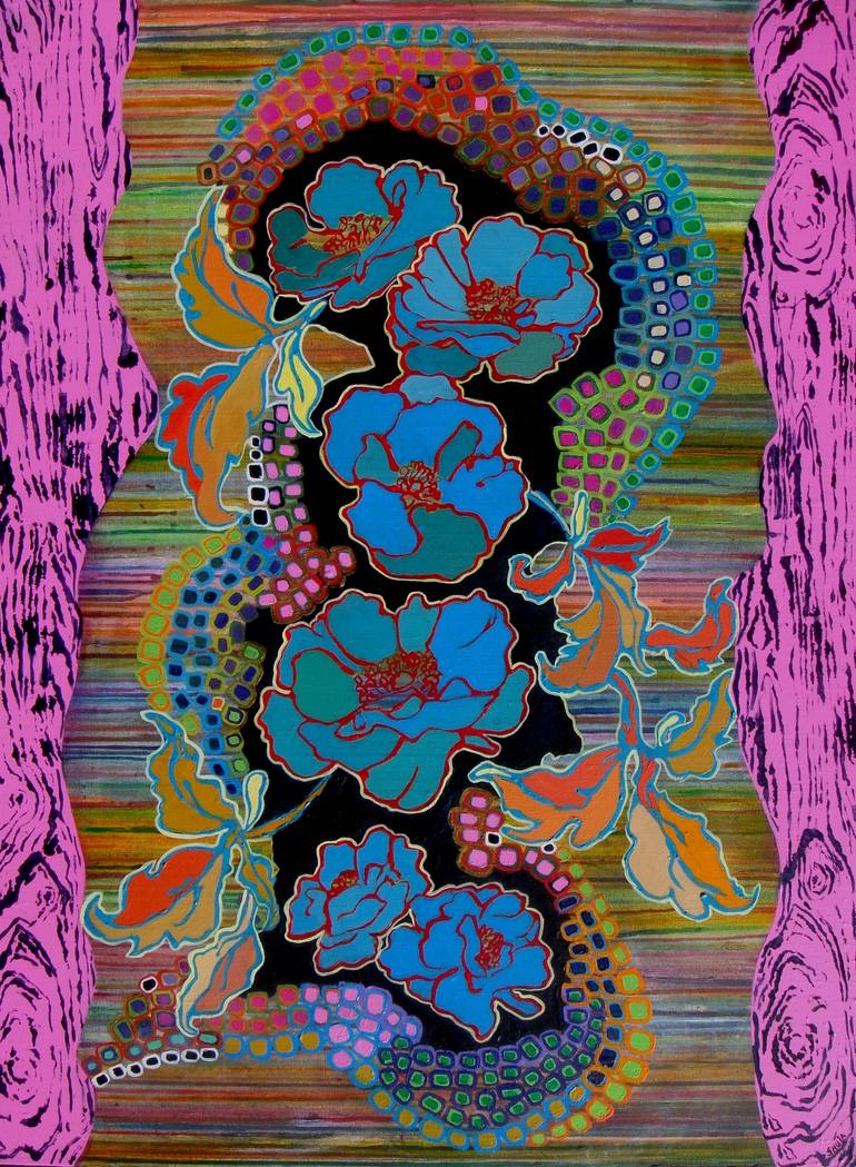 Shula Singer Arbel is a Los Angeles artist working in acrylic and mixed media. Her work is a fusion of abstract, representational and graphic images; a flattening of form mixed with painterly surfaces. Her paintings combine the rationality of structure with the expressiveness of intuition. Color and pattern are the dominant forces informing her work where “more is more.”