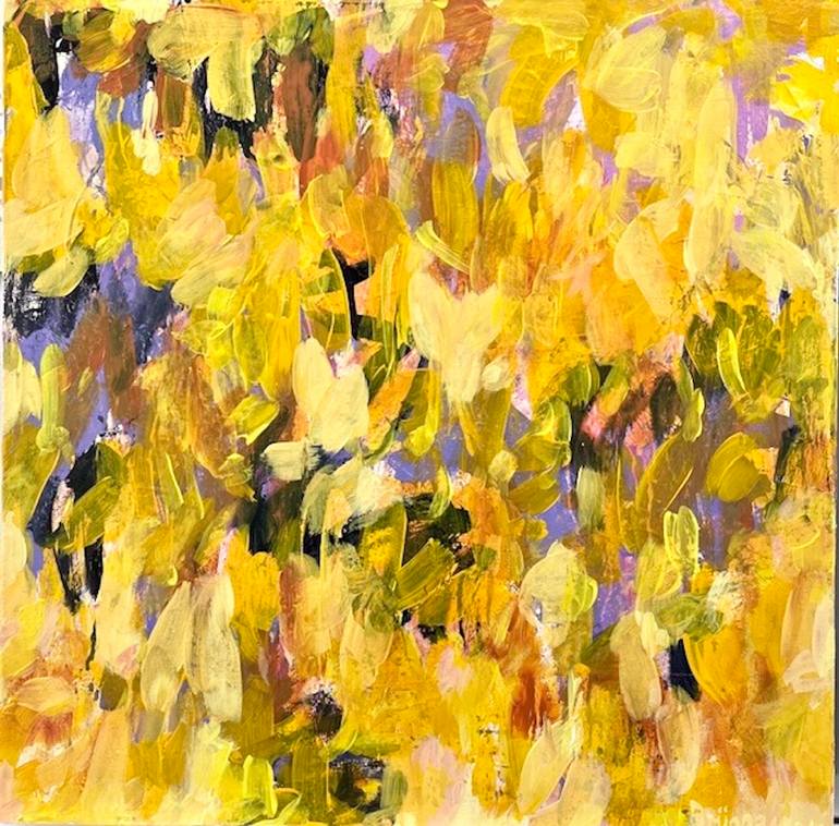 dynamic brushwork layers of colors in a warm palette suggest organic lyrical content, maybe some floral shapes, expressive abstraction. The painting is ready to hang and will bring light and an uplifting energetic energy into your space.