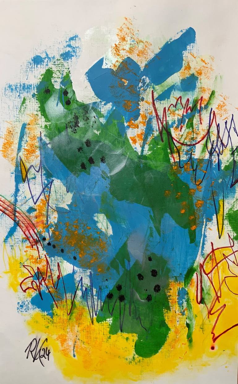 Inspiration: when the meadow is dancing in the wind there are signs for someone playeing between the gras and is happy with being here - fine art - abstract style - multicolored - certivicate of authenticity included - protected with varnish - signature in the back