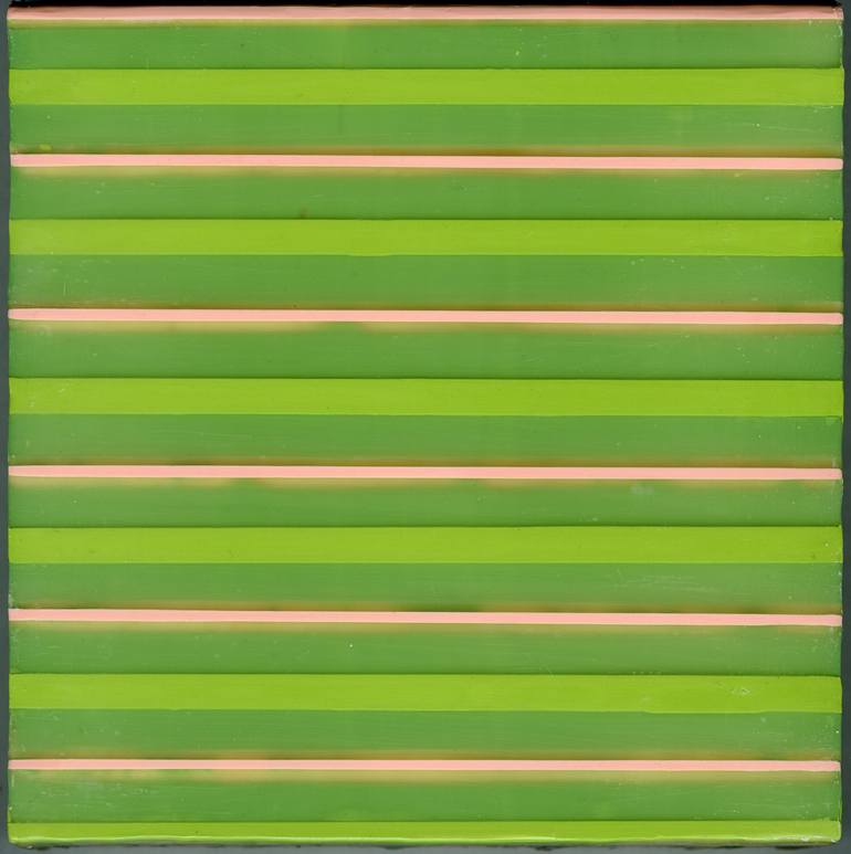 Repetitive lines, bands and patterns serve as a vehicle to explore color interactions. I am fond of the square format as it allows me to think of these paintings as part of a larger whole when I work on them. I am intrigued by the color relationships in a painting and between the paintings when arranged as triptychs or in a grid format. Encaustic Paintings: Painting with wax necessarily involves a loss of control to some extent. My process requires attentiveness to the painting's surface as I add and remove layers of wax. I watch for unpredicted occurrences as I scrape back the wax and use these to navigate through the painting.