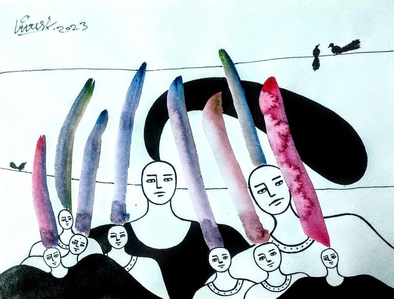 Title : Untitled Figure 2022 Medium : Acrylic and water color on paper Size : 11x8 in Year : 2022