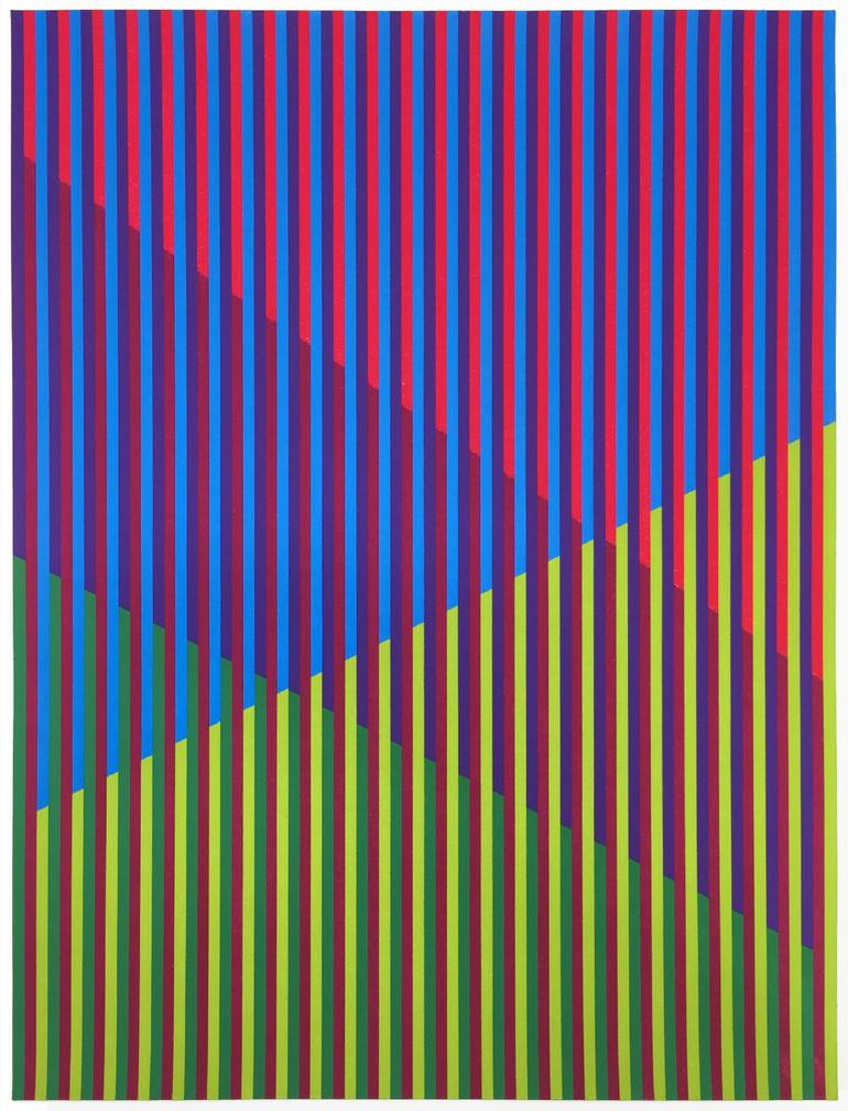 Acrylic on Arches 12x16 Hot Press Watercolor Paper Layered and alternating stripes of color are constructed to create a spatial effect of overlapping planes. Part of the Interlace series, exploring the interaction of colors and the sensations of depth and movement. In each work, several groups of...