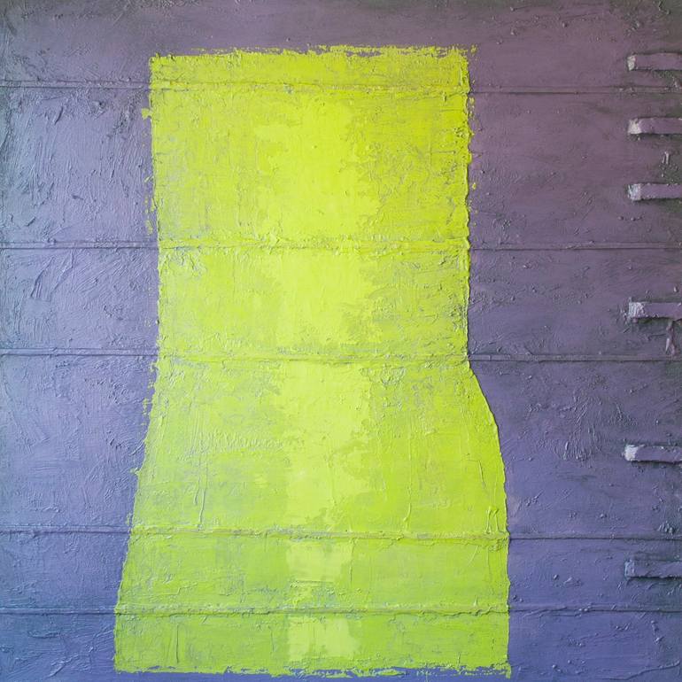 In this painting I am fascinated by the experience and duality of life in the contrast of neon yellow and purple. The relief of the canvas created by mixing acrylic with sand and oil evokes the haptic essence of our emotions. The harmony of the composition expresses the precision and balance of the ...