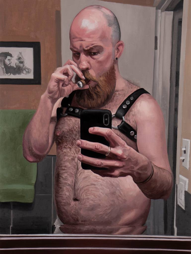 During my formal training in University, i almost entirely focused on printmaking and design; mores specifically traditional and offset lithography and etching. With the inevitable layering of imagery forming the basis of printmaking, i was fascinated with the very technical and forceful methodology of this kind of art-making. After graduating, I realized that the medium of print wasn't easy to continue within the confines of my home studio. I had no printing presses and fork lifts to move large limestones around or massive sinks to clean them off. I had to change mediums and so i taught myself how to paint! Having been steeped in heavy step by step production for so long, I transferred this knowledge to painting: the science of colour mixing, the different layers of grounds and paints and oils applied. It seemed that my natural inclinations for the technical became easily applied to a painterly almost photo realism in painting. So here I am, many years later, a formed but still learning painter, painting portraits of gay men.