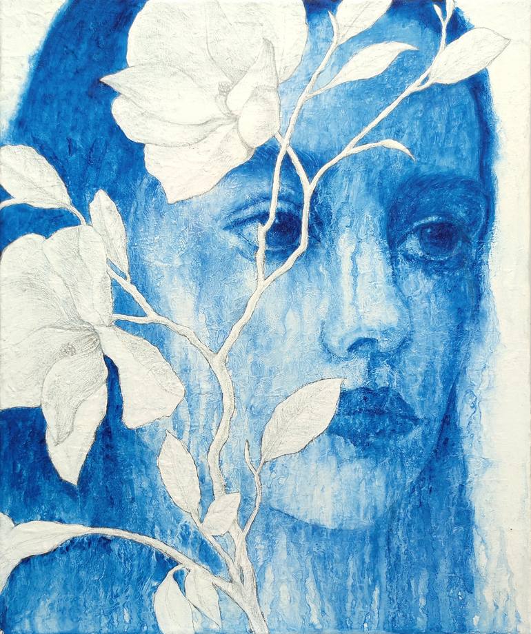 Untitled ( Portrait in blue ) Acrylic painting on canvas 50 W x 60 H x 1.6 D cm 2025