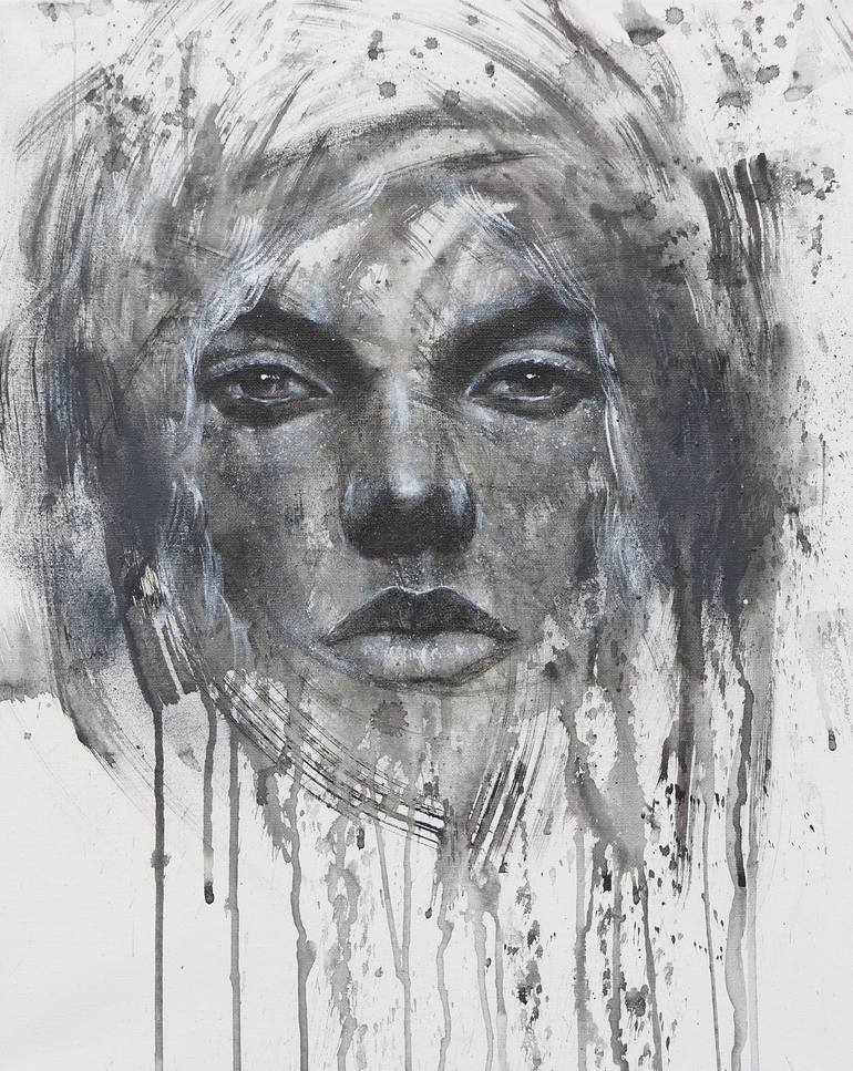 Charcoal,ink and acrylic on gallery wrapped canvas -ships flat with certificate of authenticity -back of artwork is signed