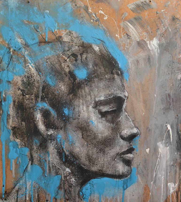 Acrylic,spray paint and charcoal on cradled hard board panel (sides painted black) -signed and dated on back -Ships flat with certificate of authenticity