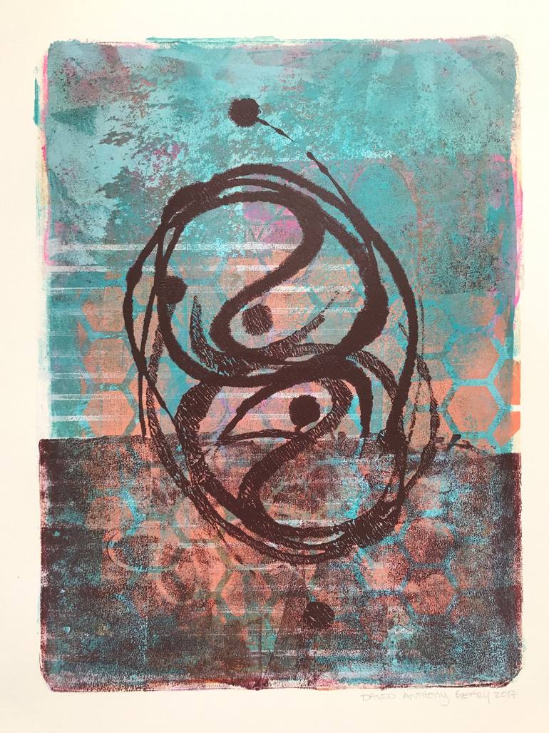 Each piece is a dance between intention and intuition, a process of exchange, discovery and experimentation informed by the moments of their creation. A hybrid medium the comes from the joining of traditional acrylic painting and the Monotype.