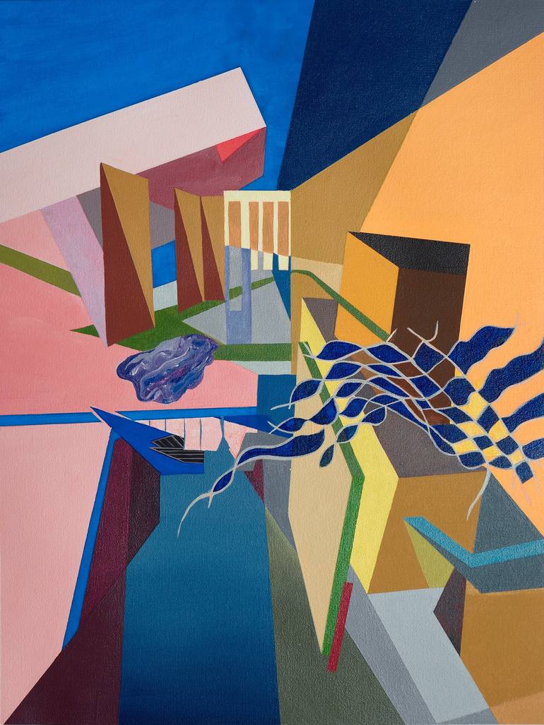 I am interested in how we experiment movement nowadays due to the use of screens and mobile devices, which affects our perceptions of the reality. Most of the time, moving around depends more and more on the displacement of the eye from screen to screen than of our bodies from place to place. Do we choose where to stop our look or does it suffer from an erratic movement? I work on paintings that distort and deconstruct architectures rebuilding them into new spaces. I am interested in decoding the flows between real and virtual worlds where space and time seem to be dissociated.