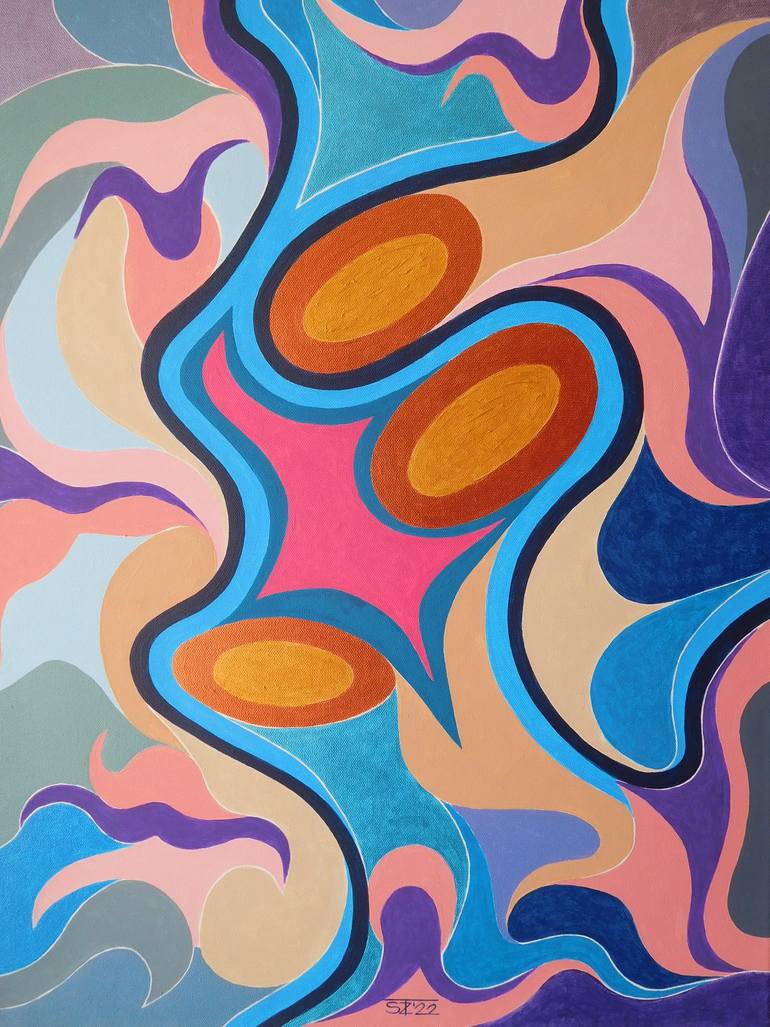 This artwork is inspired by the cosmos, unknown great future and the endless dreaming. It is original, one of a kind. The size in cm. is 70-50-2, 27.6-19.7-0.8 in inches. No need of frame, the sides are painted. Stretched canvas on a wooden frame. Freehand only. Hope you like it.