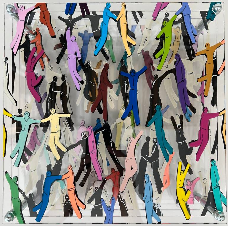 Silvia Strobos is a dutch artist who has been living and working in Switzerland since 1998. The main theme of her work is encounters. The importance of actual human interaction is key in our happiness and Silvia`s work highlight the joy of reaching out to each other, working together, dancing together and spending time together as friends and family. Her paintings are full and structured at the same time, as if she tries to organize human interaction. Her work pictures crowds but highlights the personal contact between a few. She often uses plexiglass in her work which layers the social structures, gives it more depth and thus emphasizes the personal encounters in the front. Her clear message is that in a world of algorithm, hashtags and followers, we shouldn't forget the importance of real physical human interaction. Since 2012, her work has been exhibited in several galleries in group exhibitions as well as in solo exhibitions, and shown at many international art fairs including Affordable Art Fair Hamburg, AAF Brussels, AAF Stockholm and AAF Amsterdam. In 2020 she had her premiere at the well known Art Karlsruhe. Other art fairs where her work was shown are the Art International Zürich, ArtMuc in Munich, Art Nocturne Knocke and the INC Hamburg. Strobos was also nominated for the dutch art Painting of the Year 2017, and was a semi finalist in the ArtBoxProjekt 2018 in New York, as well as winning the second prize in the Schoch Art Award 2019 in Switzerland. In 2022 she won the Voices of Tomorrow Art Award from the Contemporary Art Curator Magazine. Public purchases are made by Lakestar Advisors Zürich, Krämer Bau St. Gallen and the Immunology Center Zürich.