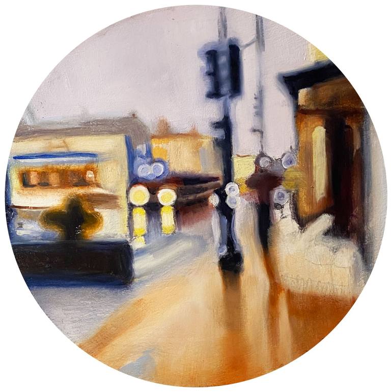 "Sometimes, inspiration strikes in the most unexpected moments. Standing in the rain, waiting for the bus on Upper Wisconsin, Washington DC, this scene unfolded in front of me—blurred lights, the glow of the street, and the feeling of stillness amidst the city's hustle. This piece captures that flee...