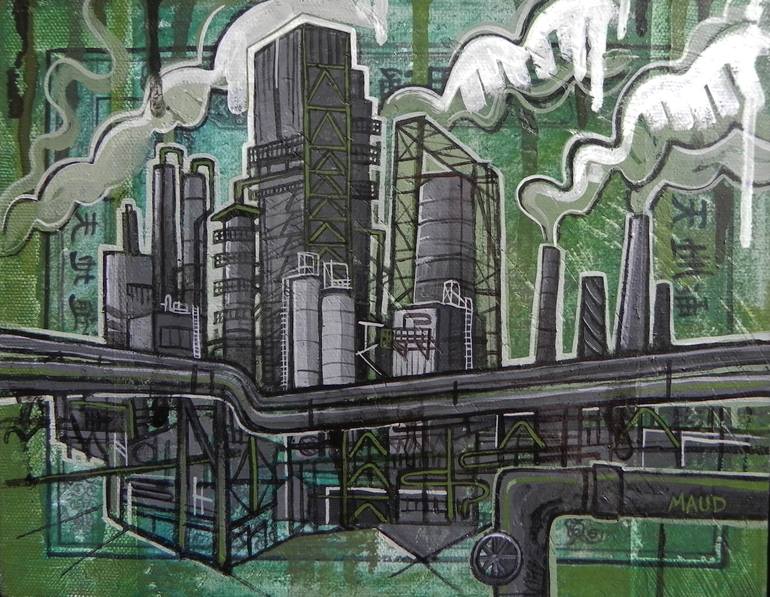 Factory Collection : Mixed media painting inspired by urban scenes and factories. Primarily a figurative painter, Maud Besson is Involved in constant aesthetic research. Definitively instinctive, by creating her work, she expresses who she really is. Her favorite subject has always been the human b...