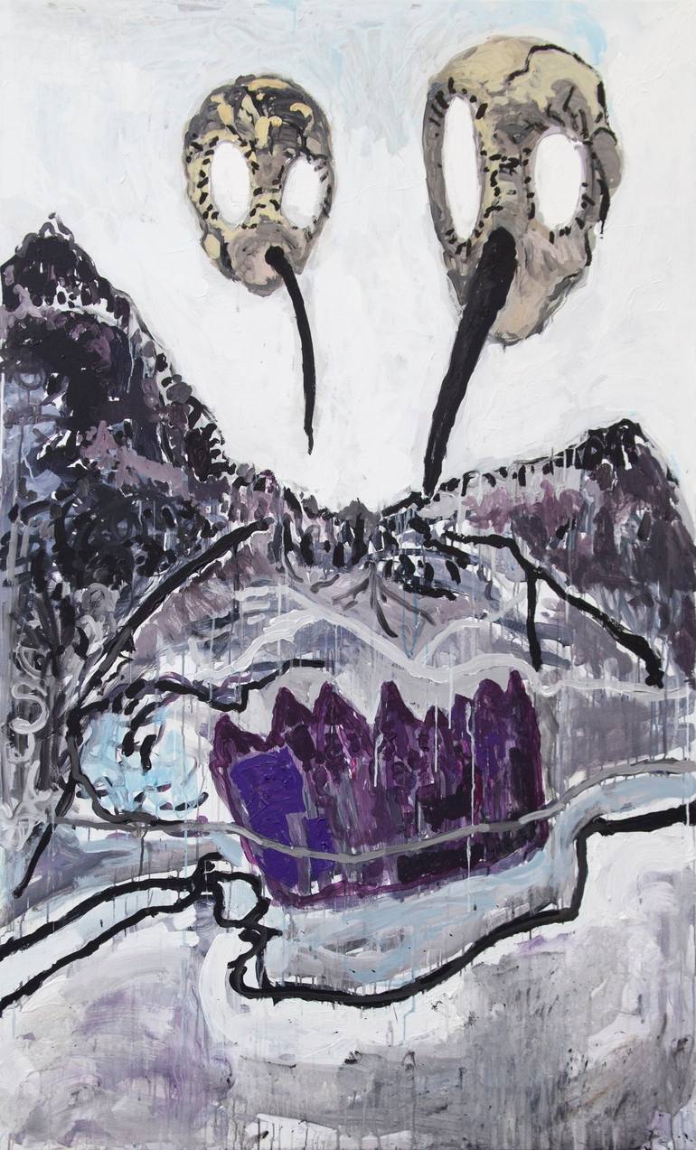 This painting captures the city of Ústí nad Labem, located in northern Bohemia, with the Elbe River flowing through it. The composition features floating heads above the landscape, which serve as symbolic elements. While I initially thought of these heads as representations of the people living in Ú...