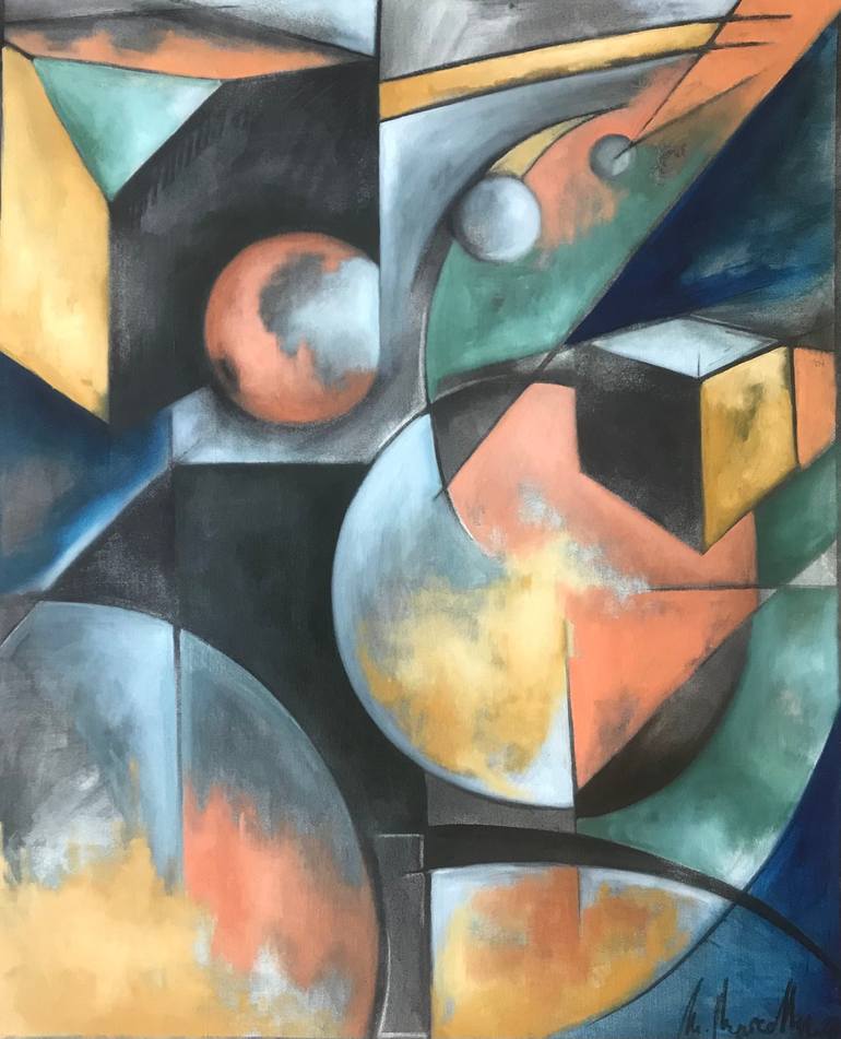 Part of the new series of geometrical abstraction, started in 2020 as a charcoal drawing and finished in 2022. This artwork represent my interest in the work of lines, contrast, colors and composition. The dimensions are 80x100x1,9cm and is signed and dated, painted with oil on canvas and glued on...