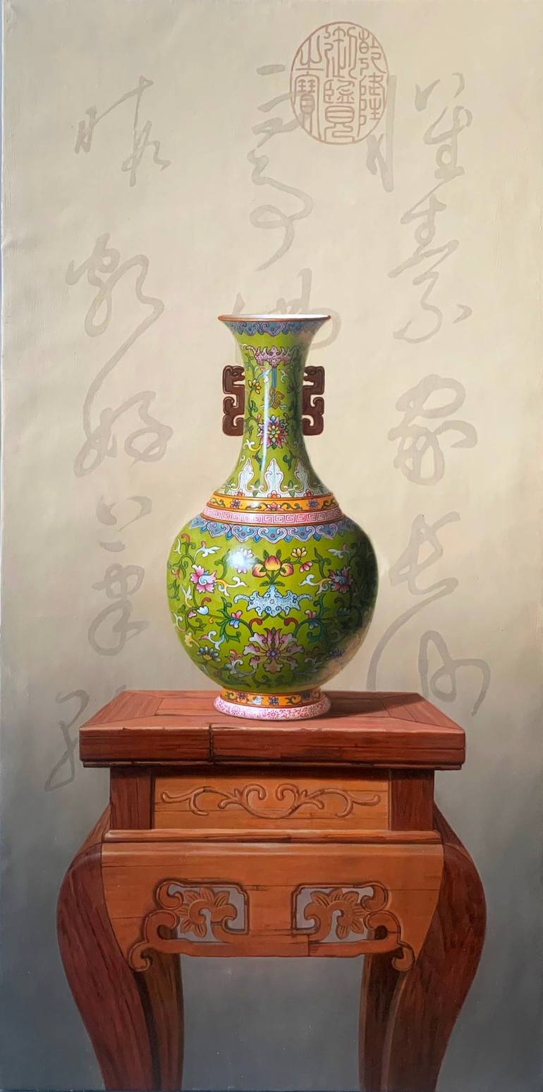 This is an original still life oil painting on canvas i created recently,it will be rolled in a tube for shipping,without stretching or framing! The painting is inspired by Chinese tradtional culture: Chinese China means peace in life,and the wooden table means stable!