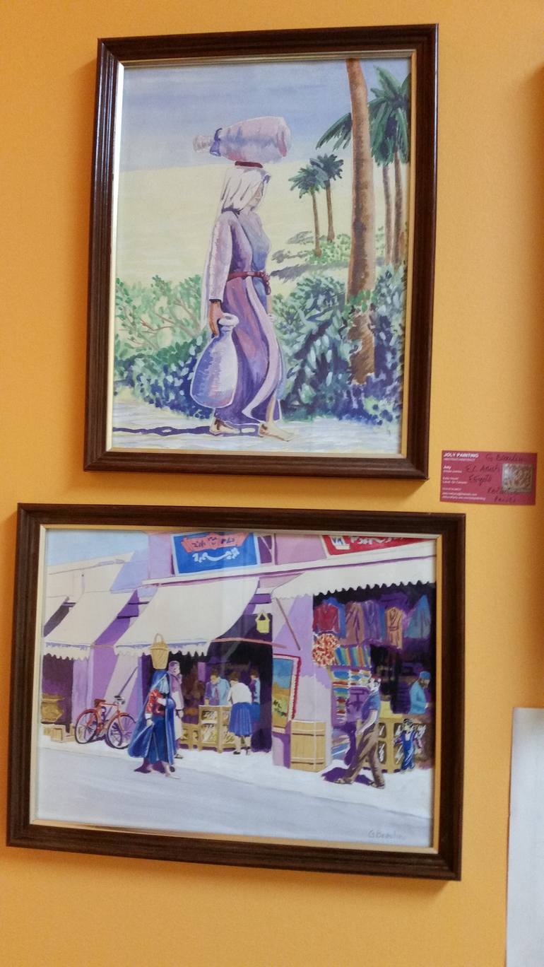 THESE AQUARELLES WHERE DONE IN 1961 AFTER I WAS BORN, MY FATHER WAS IN EGYPT AS A PEACE KEEPER IN THE AIR FORCE ''BANDE DE GAZA''. HE TOOKS PICTURES AND MY GRAND FATHER PAINTED THEM WITH WATER COLOR, THE FIRST ONE IS A ''BEDOUINE'' AND OTHER IS ''VILLAGE EL ARISH''.